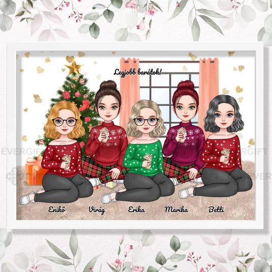 Karácsonyi lányok legjobb testvér/Barátnő - személyre szabható falikép akkor 5 lánnyal