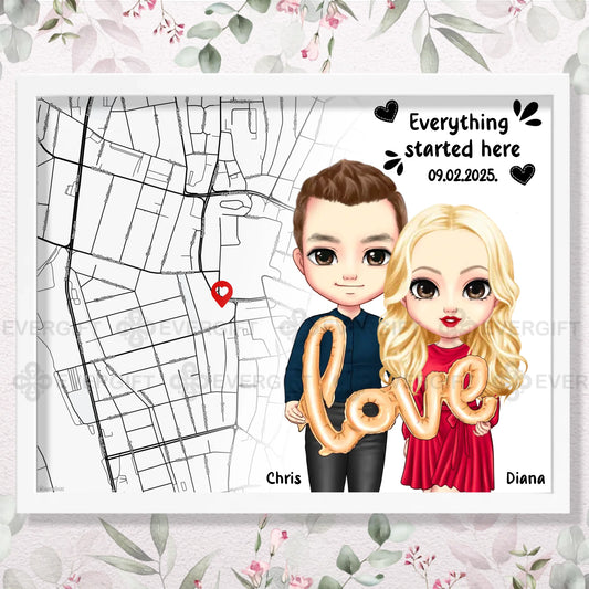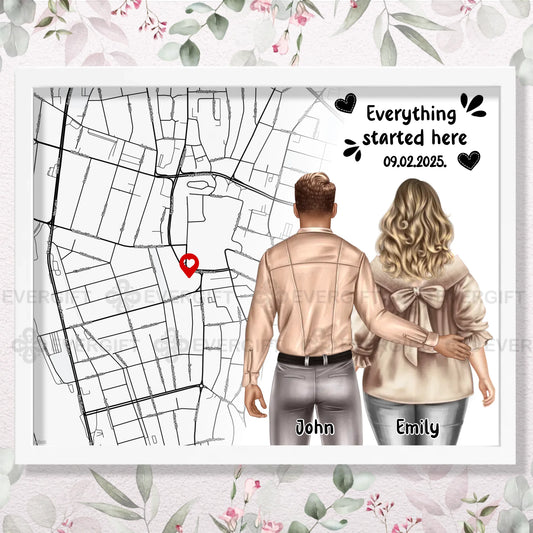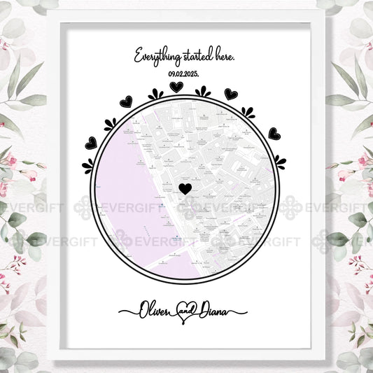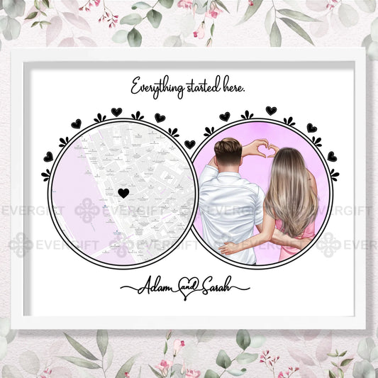 Where We First Met Map Wall Art for Couple