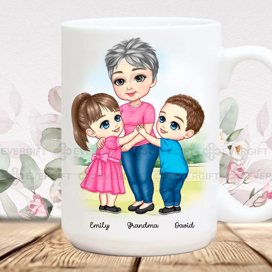 Endless Love in Her Arms – Personalized Mug for Mom or Grandma Hugging Children